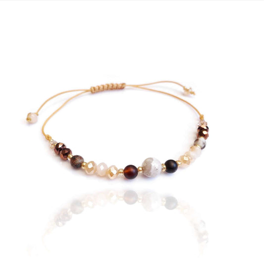 Brown bracelet with natural stones jasper jadeite agate moonstone, TD9320