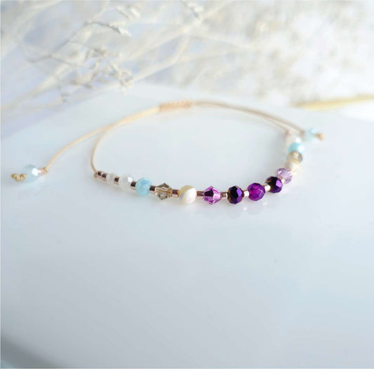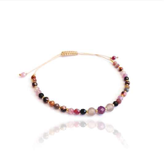 Purple string bracelet with natural stones amethyst tourmaline rhodochrosite, TD9290