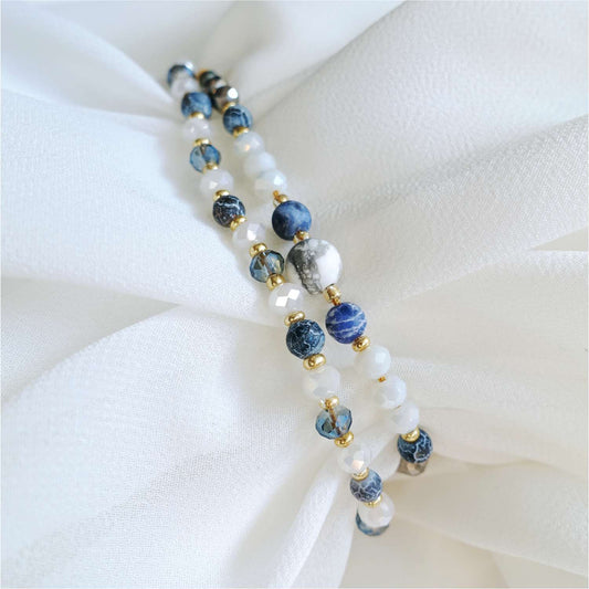 Two string bracelets with natural stones howlite agate sodalite, TD9261