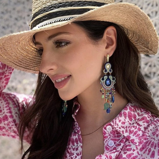 Colorful Soutache Earrings with Fringes 215 Basanti Long