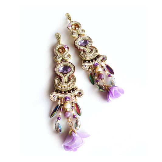 Purple beige soutache earrings with fringes 117 Dubai Purple