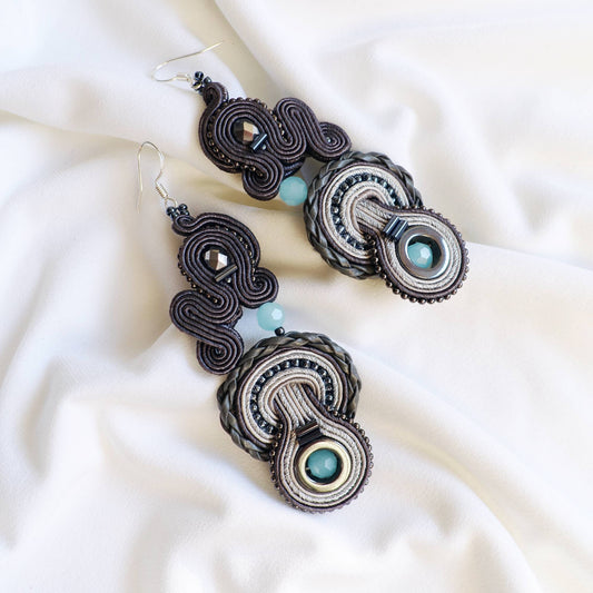Gray turquoise soutache earrings with hematite 115 SilverBlue
