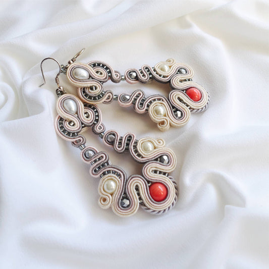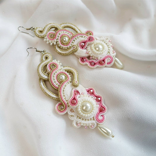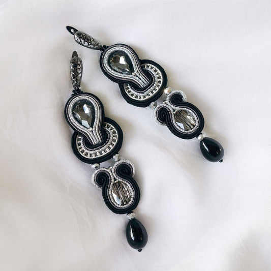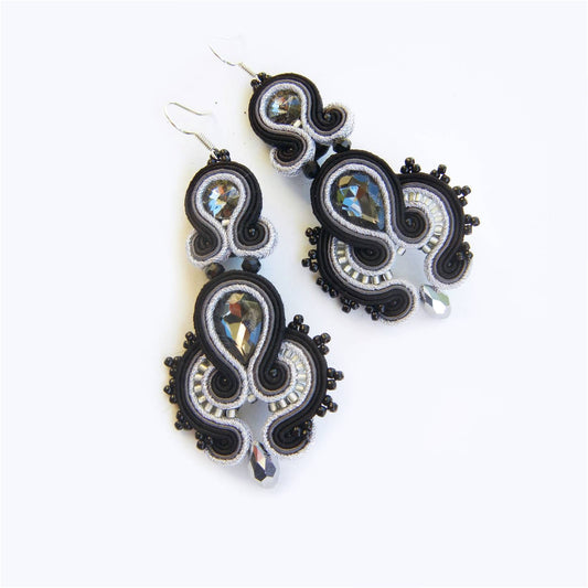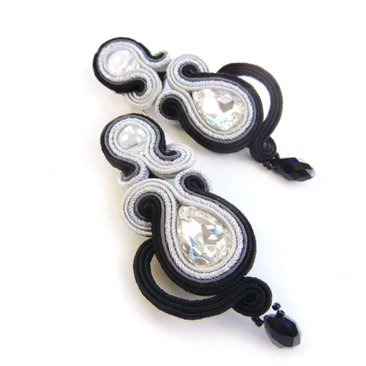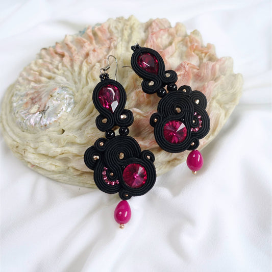Black and pink soutache earrings with crystals 30 BlackRossy
