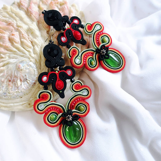 Black neon soutache earrings with beads and fringes 150 Cati III