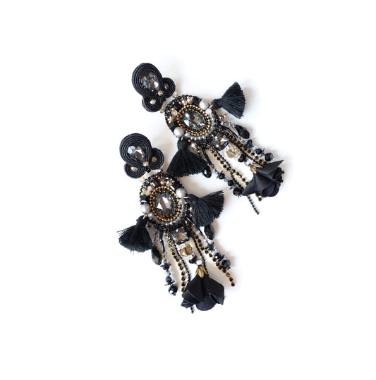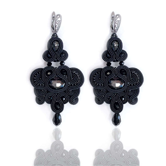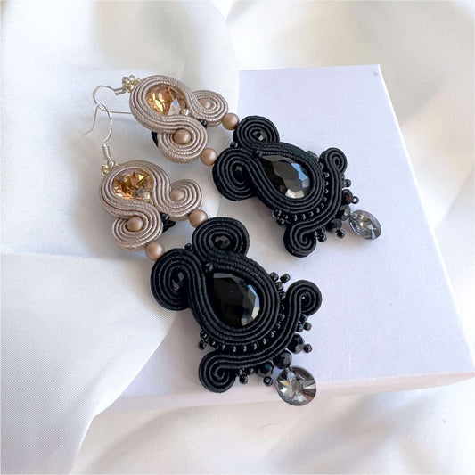 Black gold evening earrings soutache with crystals 211 BlackGold