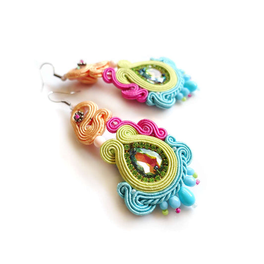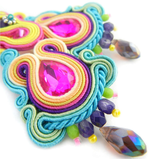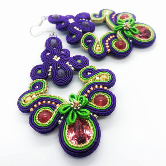 Cornflower blue soutache earrings with fringes 213 Jasmina