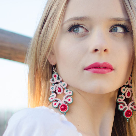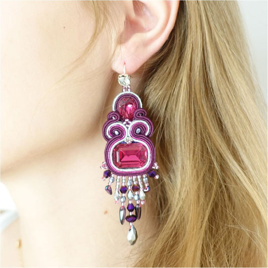 Red and blue soutache hoop earrings with fringes 195 Saddi
