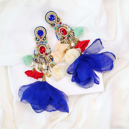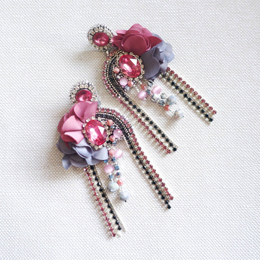Pink Flower Earrings Crystal Fringe 409 Flora