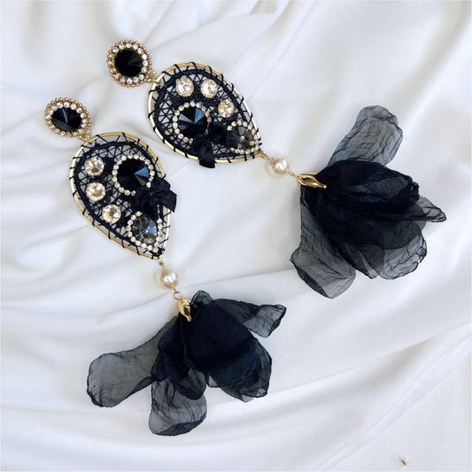 Black earrings on lace with flowers 508 Blacki dream catchers