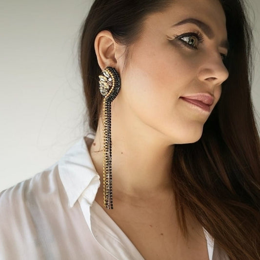 Black and gold earrings short and long model 510 Marcela mish-mash