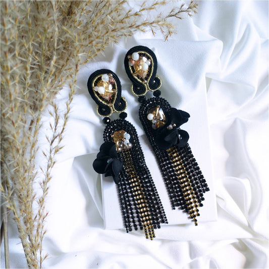 Pendientes de noche de oro negro soutache con cristales 211 BlackGold