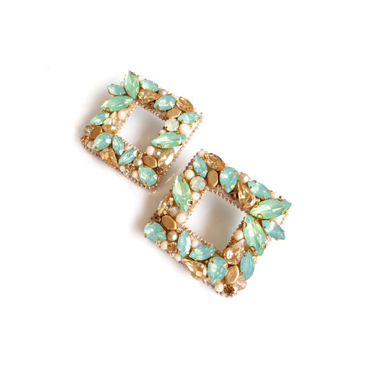 Miętowe kwadratowe kolczyki z kryształami 421 Green Square